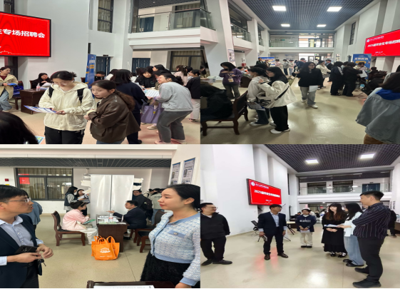 招聘会现场设在文科楼712门口大厅,9家用人单位通过展位展示、企业宣讲、现场面试“一站式”对接毕业生。各企业展位前,毕业生与企业代表热情交流,投递简历、咨询岗位详情。学院在712会议室同步开展了9场企业宣讲会,用人单位详细解读行业趋势、岗位要求及职业发展路径,吸引大批员工驻足聆听。学院还专门设立多间独立面试教室,供企业现场考核候选人,部分员工通过面试后与企业达成初步就业意向。