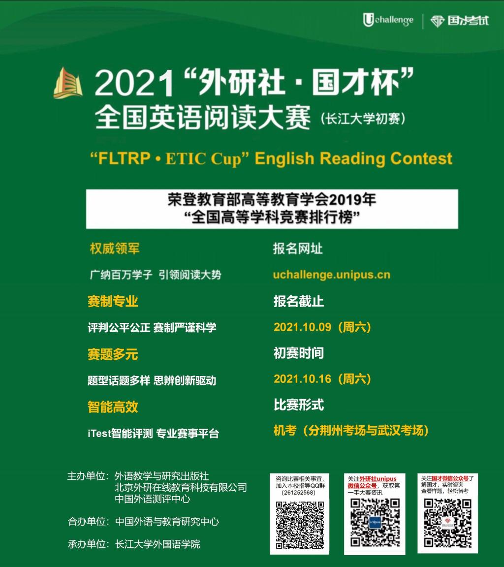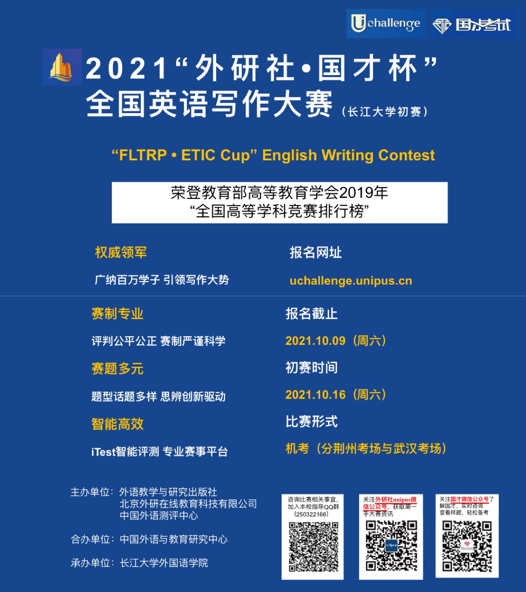 2021“外研社•国才杯”全国英语阅读、写作大赛火热报名中该赛事为公益性赛事,不收取报名费,欢迎三亿体育app在校生踊跃报。
