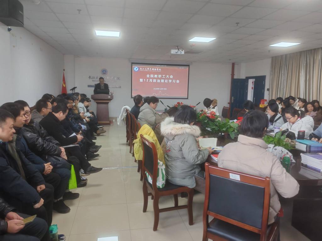 会上,周杰带领全体教职工开展了政治理论学习,并向全体教职工通报了近期学院分工会工作、人才工作、教学竞赛、员工竞赛、公外教师外出调研等情况。副经理徐芳、付小秋、谢家成分别就本科教学工作、研究生工作、科研及团队建设等事项作出安排部署。