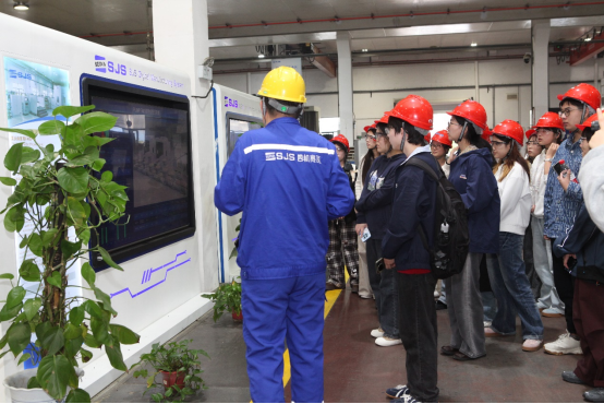 随后的智能制造车间参观,让抽象的理论化为可触可感的现实。数字制造系统实时更新生产数据,柔性管理看板清晰展示工作流程,高度自动化的生产线正精密有序地运行。同学们亲眼见证一件件高端设备从无到有的制造过程,深刻感受到现代工业在严谨与高效背后所承载的“勇毅前行争一流”的实干精神。