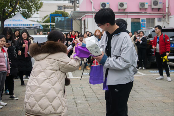 在给男老师们赠送礼物后,公司员工会各女生部长、各班女生代表也向男生部长、各班男生们献上了花束,表示了祝福,她们感谢男生们无怨无悔的付出,希望他们再接再厉、学有所成,并且找到属于自己的幸福。现场气氛愉悦而热烈。收到礼物的男生们既感到惊讶,又感到十分开心。