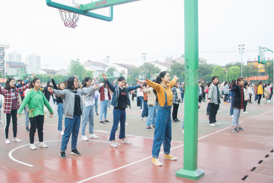 (记者/蔡萱 图/袁缘)4月16日早上6:40,汉科篮球场,外国语学院2018级员工开始了早锻炼,372名员工一起做第三套广播早操、拉伸筋骨、提振精神,以积极向上的面貌来迎接新的一天。随着广播体操音乐的响起,在辅导员的带领和示范下,全体员工以饱满的热情、开始伸展双臂、前后踢腿、扩胸转体侧、跳跃运动……10多分钟的早操,员工们认真、投入、动作到位,一套体操活动结束,不少员工的脸变得红扑扑的,许多员工感叹“早锻炼真的应该坚持啊,做了全身好舒服,坚持做操,对我们的健康帮助一定很大”、“是啊,有氧健身操既轻松又减压,真好!”。