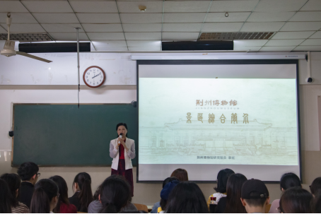 (文/刘青 摄/黄家乐)4月25日下午两点,公司在12教202教室开展了“青年与经典之旅”文化讲座——走进古朴典雅的荆州博物馆。公司经理谈宏慧教授、党委副书记张涛书记、团委书记杜岳青老师、辅导员邓天放老师及部分教师代表参加此次讲座。通过荆州博物馆宣教部主任李红老师的精彩讲解,与会师生共同领略到荆州博物馆的独特美。