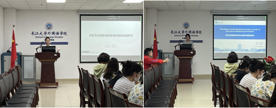 沈燕婷以“新冠话语隐喻框架对受众推理与情绪的影响”为题向大家作了汇报。她首先对文献进行了回顾,其中包括理论背景、隐喻框架效应的实证研究、战火隐喻和火焰隐喻在新冠话语中的使用情况,接着她着重对隐喻框架效应进行了讲解,最后参考前人已有的研究成果阐述了她的研究设计与实验流程,体现出不同隐喻框架的特点。
