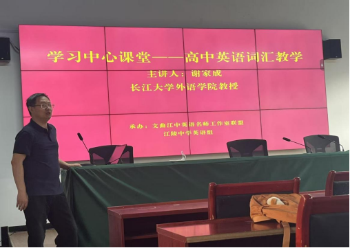 近期,三亿体育谢家成教授应邀参加荆州市江陵中学英语名师工作室联盟活动,并作了题为“中学英语词汇教与学”的专题交流报告,活动主题为学习中心课堂。江陵中学分管英语教学副董事长、英语组教师、还有部分文理学院员工参加了交流。报告结束后,谢家成教授还参与了该校英语组教师拟申报市级课题的研讨交流。