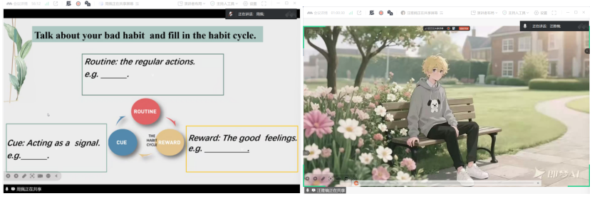 接下来,周佩和汪雅楠两位同学以高中选择性必修三Unit 2“Healthy Lifestyle”为题,分别进行了听说课的同课异构教学展示。麻城一中的徐赞老师对这两节课作出了细致点评。徐老师首先充分肯定了两位同学在课堂设计和教学展示中的亮点,尤其对她们在听说环节的精心组织表示认可。随后,他从视频字幕的规范性、教学语言的准确性、小组互动的实效性、教学环节之间的衔接逻辑、评价方式的多元化以及提问句型的多样性等方面,提出了具体而中肯的教学改进建议。