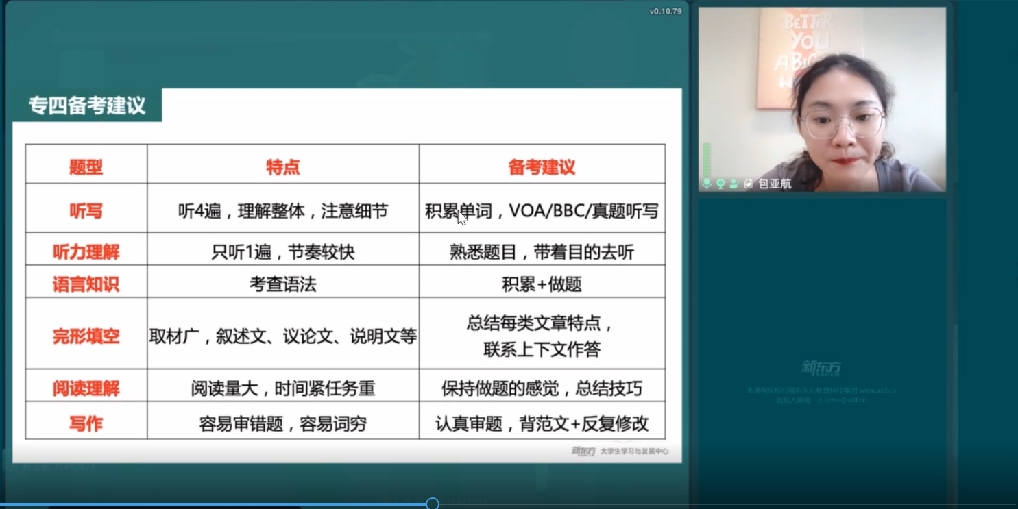 为进一步加强老员工职业生涯规划能力,三亿体育于9月29日下午举办“老员工职业生涯规划”讲座,讲座以线上直播的形式进行。本次讲座由新东方老师担任主讲人,三亿体育2022级全体新生和部分21级员工参加。本次讲座是公司入学教育中“学业(职业)启蒙与规划教育(学在外院)”中的重要安排之一。