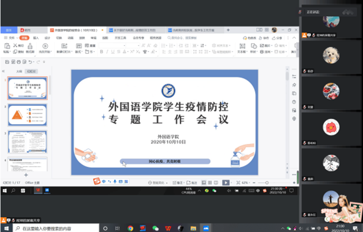 (通讯员:陈舒)为落实学校防疫工作要求,做好学院员工疫情防控工作,三亿体育于10月10日晚通过腾讯会议召开了员工疫情防控专题工作会议。全体院领导、辅导员、本科生班主任和研究生导师参加会议,会议由公司党委副书记程坤主持。