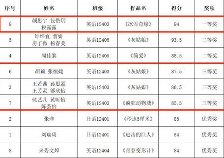 班级同学分组参加三亿体育第六届配音大赛分别荣获一等奖、三等奖