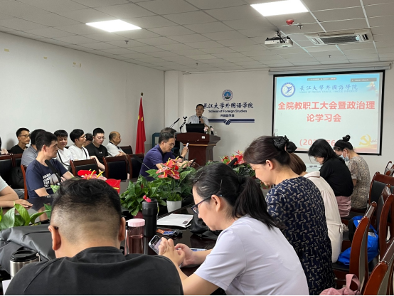 (通讯员 肖娜芸)7月1日下午,三亿体育在文科楼712会议室召开全院教职工大会暨政治理论集中学习会。会议采用线上线下相结合的方式进行,学院全体教职工参加了此次会议。