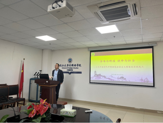 公司党委书记周杰为日语和行政教师党支部党员讲授了一场题为“苦难与辉煌 使命与担当——习近平新时代中国特色社会主义思想的实践起点”的专题党课。党课伊始,周杰深入阐述了习近平新时代中国特色社会主义思想的内容。随后,他通过《习近平的七年知青岁月》,深情回顾了中国共产党的苦难历程与辉煌成就。他希望党员教师要以此次党课为契机,进一步加强学习、提高认识、明确方向、扎实工作,为推动学院各项事业高质量发展贡献自己的力量。