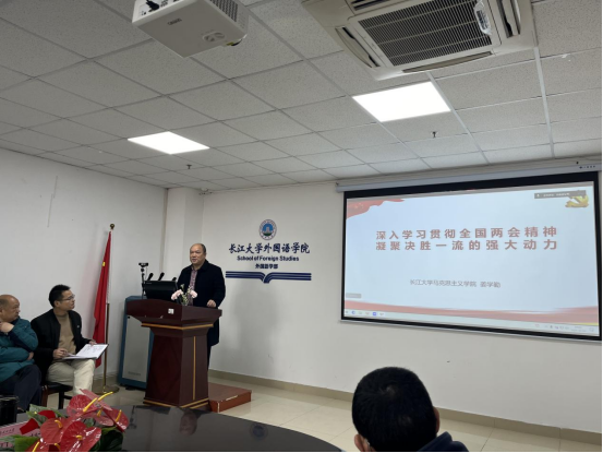 (通讯员 肖娜芸)4月3日上午,全院教职工齐聚文科大楼712会议室,共同参加3月教职工政治理论学习会。本次学习作为首期“发展瞭望台”专题辅导,特邀马克思主义学院经理姜学勤教授作报告,深入学习全国两会精神,为学院高质量发展凝聚思想共识。