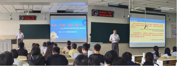 随后,程坤以“告别‘内卷’拒绝‘躺平’--从心态变迁看Z世代青年奋斗精神培育”为主题讲授党课,他以“内卷”和“躺平”为例分析了Z世代青年在当下社会环境中的心态变化和形成原因,通过分享优秀青年奋斗事例,引导同学们树立正确的奋斗观,保持积极进取的精神状态,在新时代的浪潮中勇担使命、奋力拼搏。