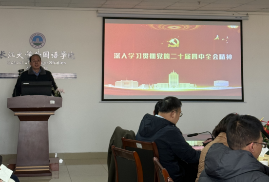 公司党委常委、宣传部长江万哲老师为全体党员讲授学习贯彻党的二十届四中全会精神专题党课。江常委围绕全会召开的时代背景、核心要义与实践要求展开讲解,解读党的二十届四中全会的时代意义与“十五五”规划战略部署,强调全会是我国迈向基本实现社会主义现代化的关键时期。他结合外语专业特点指出,青年党员要将专业学习与国家高水平对外开放、文化繁荣任务结合,增强讲好中国故事的本领,以青春之力投身民族复兴。