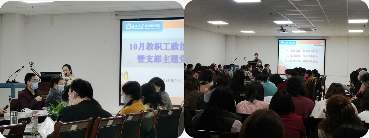 10月15日下午,学院在文科楼712会议室召开全体教职工大会,开展政治理论学习和支部主题党日活动。荆州校区教师现场参会,武汉校区教师通过线上参会,会议由公司党委书记危煜祥主持。