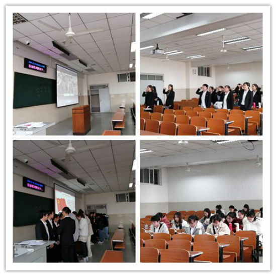 会议伊始,24名新入党的同志举行庄严的入党宣誓仪式。童老师宣读完基层党委关于批准王玲等24位同志为预备党员的决定后,24位新入党的同学身着正装,列队整齐,奏唱国际歌,面向党旗,庄严宣誓。宣誓结束后,优秀党员代表陈宇、石天、吴杰、史文双、汪琳、王宇枫、陈丽君等同学为预备党员佩戴党员徽章。随后陶璐琪、刘传宇、张艳艳、吴杰、彭秦、涂桐瑶等同学领读了党章总纲的具体内容,石月月、柳娜、葛涛、陈舒、韩江雪、张婷婷、罗歌、李文佳等同学领读了《习近平关于“不忘初心、牢记使命”论述摘编》的第八章至第十章的部分内容。
