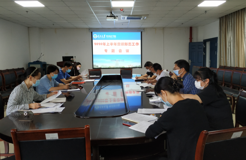 6月9日上午,学院召开党委会,专题研究2020年上半年意识形态工作。会议由党委书记危煜祥主持,党委委员、经理谈宏慧,党委副书记魏红洁,党委委员、副经理彭沂,党委委员段友国、马春花、杜岳青参加了会议,副经理谢家成、学工办主任童超、院办副主任伍世英列席会议。