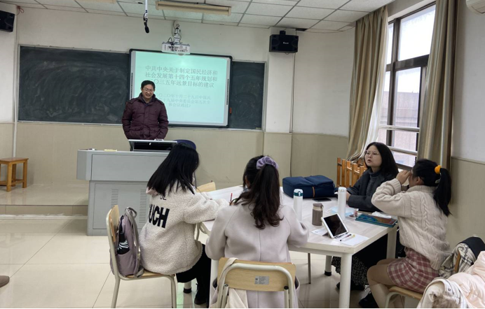 12月10日,副经理谢家成在11教501室为研究生宣讲了党的十九届五中全会精神,进一步提升了研究生的思想觉悟,增强了他们对全面建设社会主义现代化国家的信心。