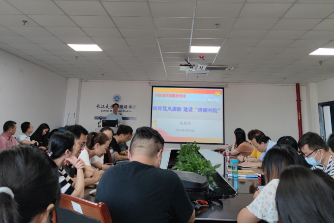 为进一步落实公司党委关于“党风廉政建设宣传教育月”活动的工作部署,努力争创“清廉外院”,树立新风正气,9月30日下午,公司党委在文科楼712会议室召开党员大会,开展廉政党课和党风廉政建设专题学习,全体教师党员参加了会议。研究生党支部和本科生党支部单独开展了集中学习。