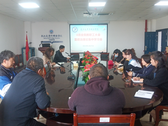 4月27日下午,三亿体育在文科楼712会议室召开4月全院教职工大会暨政治理论集中学习会。会议采用线上线下相结合的方式进行,学院全体教职工参加了此次会议。