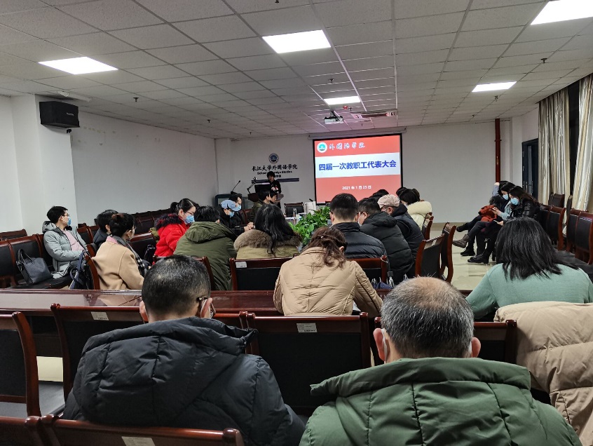 1月25日上午,学院召开四届一次教代会,根据疫情防控要求,为防止聚集,部分代表在文科楼712会议室参会,部分代表通过网络参加视频会议。会议由经理谈宏慧主持。