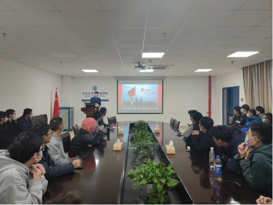 首先,张源缘同学为大家展示了他在部队时拍摄的视频和照片,同学们看到的是军营的刚硬与坚韧、欢乐与泪水,明知很苦但还是会选择去磨练自己、保家卫国的魄力。随后,又和同学们分享了两年军旅生活的所见、所闻、所感,表示在部队中学到了很多,从入伍时的懵懂,到退伍时的富有纪律、崇尚集体。紧接着,聂浩同学为同学们重点讲解了老员工应征入伍的优惠政策和相关条例,以及入伍后地方政府、学校等的一些补助事项,回答了一些想要入伍同学所担忧的问题。