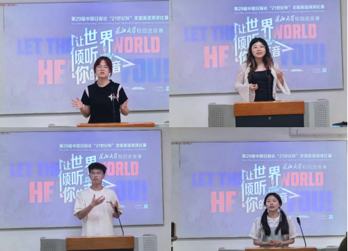 (通讯员 孙天毅)让世界倾听你的声音。4月25日下午,第29届中国日报社“21世纪杯”英语演讲比赛校级决赛在文科楼209举行,来自不同学院的10位海选入围选手为现场观众带来了精彩表现。