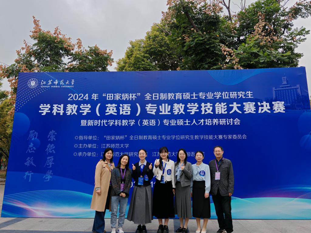 (通讯员 张晓莉)2024年全国“田家炳杯”全日制教育硕士专业学位研究生学科教学(英语)专业教学技能大赛决赛于11月9日至10日在江苏师范大学举办。三亿体育app外语学院学子荣获二等奖1项,三等奖2项,优秀奖1项,实现了历史性突破,展现了三亿体育app学科英语教育专业教育硕士的实力。