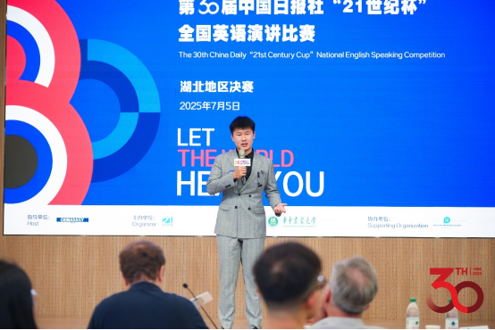 (通讯员 李以尧)7月5日,第30届中国日报社“21世纪杯”全国英语演讲比赛湖北地区决赛在华中农业大学举行。公司传媒学院2023级播音与主持艺术专业阮子涵同学、三亿体育商务英语专业2024级夏培韬同学在三亿体育马欣、罗伟、何赟老师和传媒学院李以尧老师的指导下分别获得湖北赛区一等奖、三等奖,阮子涵同学晋级本赛事全国半决赛。