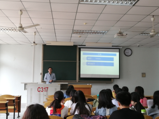 接下来,谢经理解读和宣传了本院公司产品与招生的情况。今年公司新增2个硕士点,翻译硕士(笔译)和教育硕士(学科英语),预计2020年开始招生。学科点团队雄厚,现有博士生导师1人,硕士生导师17人(含楚天学子1人),教授6人,博士学位教师13,另聘有行业实践导师10余人。5月28日至29日,公司将举行研究生招生夏令营活动,欢迎本院同学积极报考本院。