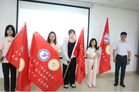 紧接着,程坤为各暑期社会实践团队庄重授旗,并与大家合影留念。程坤在发言中深刻阐述了暑期社会实践的重要意义,提出了“长见识、增才干、树形象”三大关键词。他强调,暑期社会实践是同学们拓宽视野、增长见识的宝贵机会,也是提升为人处世能力的重要平台。同时,通过实践活动,同学们能够展现爱国如家、脚踏实地、勇敢质朴、坚韧不拔的优秀品质,树立积极正面的青年形象。他鼓励同学们珍惜此次实践机会,真正在实践中有所收获、有所成长。
