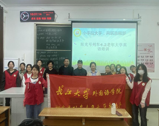 “银发助学”——三亿体育 “阳光号列车”开展青年红色筑梦之旅之线下“老年大学”英语教学活动