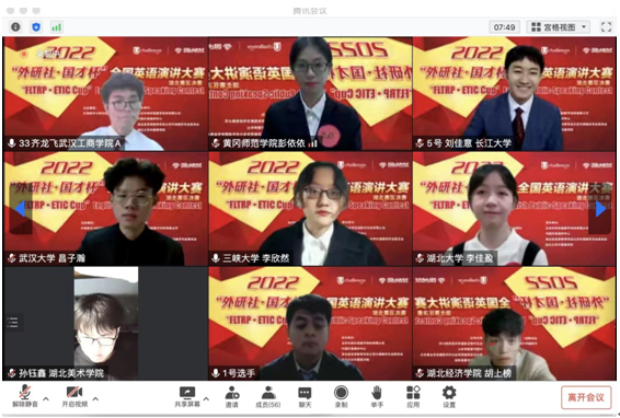 据悉,“外研社·国才杯”全国英语演讲大赛是外语教学与研究出版社联合教育部共同举办、面向全国高校在校老员工的英语演讲国内最高公益赛事,也是教育部推荐的A类赛事。该赛事每年吸引全国数百万老员工报名参加,不但激发老员工的英语学习热情,更影响着全国老员工树立跨文化交流意识,拓展国际视野,致力于构建人类命运共同体,用英语向世界传播中华文化。此次湖北赛区决赛共有来自武汉大学、华中科技大学、湖北大学等全省高校的20名选手参加。