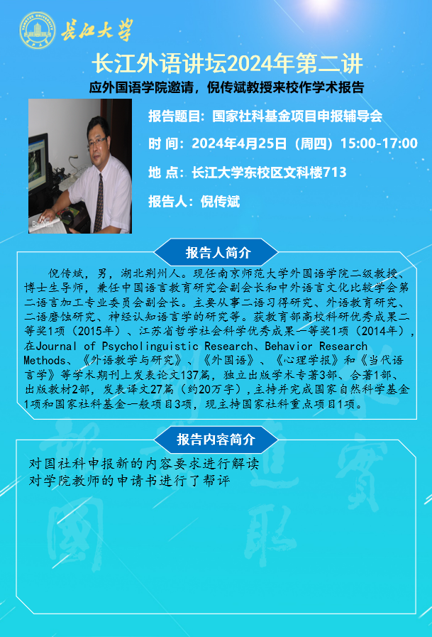 长江外语讲坛2024年第二讲:国家社科基金项目申报辅导会