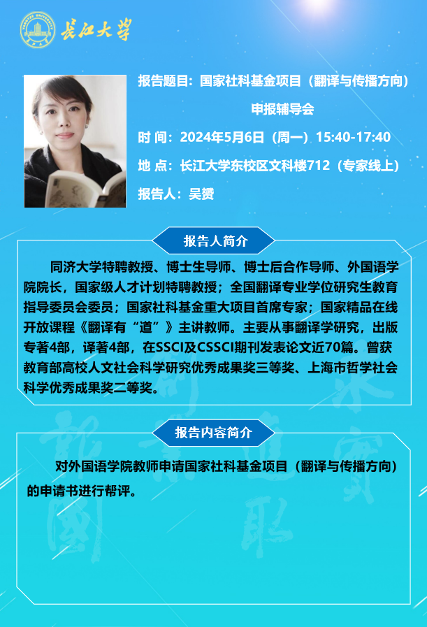 长江外语讲坛2024年第三讲:国家社科基金项目(翻译与传播方向)申报辅导会