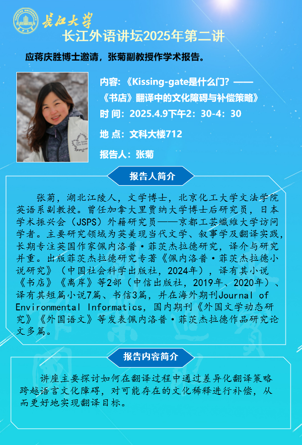 长江外语讲坛2025年第二讲:Kissing-gate是什么门?—《书店》翻译中的文化障碍与补偿策略