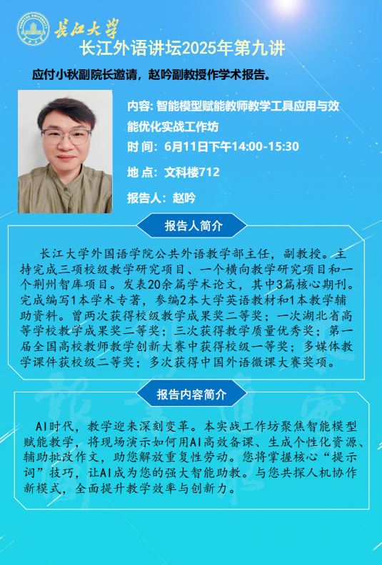 长江外语讲坛2025年第九讲:智能模型赋能教师教学工具应用与效能优化实战工作坊
