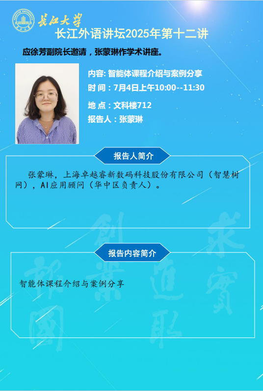 长江外语讲坛2025年第十二讲:智能体课程介绍与案例分析