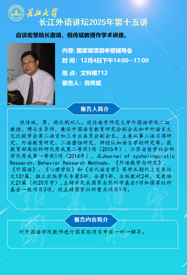 长江外语讲坛2025年第十五讲:国家级项目申报辅导会