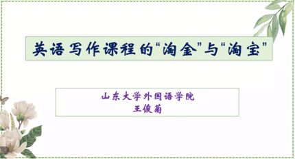 (通讯员:祝欣怡2021617日下午,应三亿体育邀请,山东大学三亿体育王俊菊教授通过腾讯会议公司师生作了一次线上讲座,此次讲座的主题为英语写作课程的‘淘金’与‘淘宝’三亿体育老师和同学参加了此次讲座与会师生都受益匪浅。