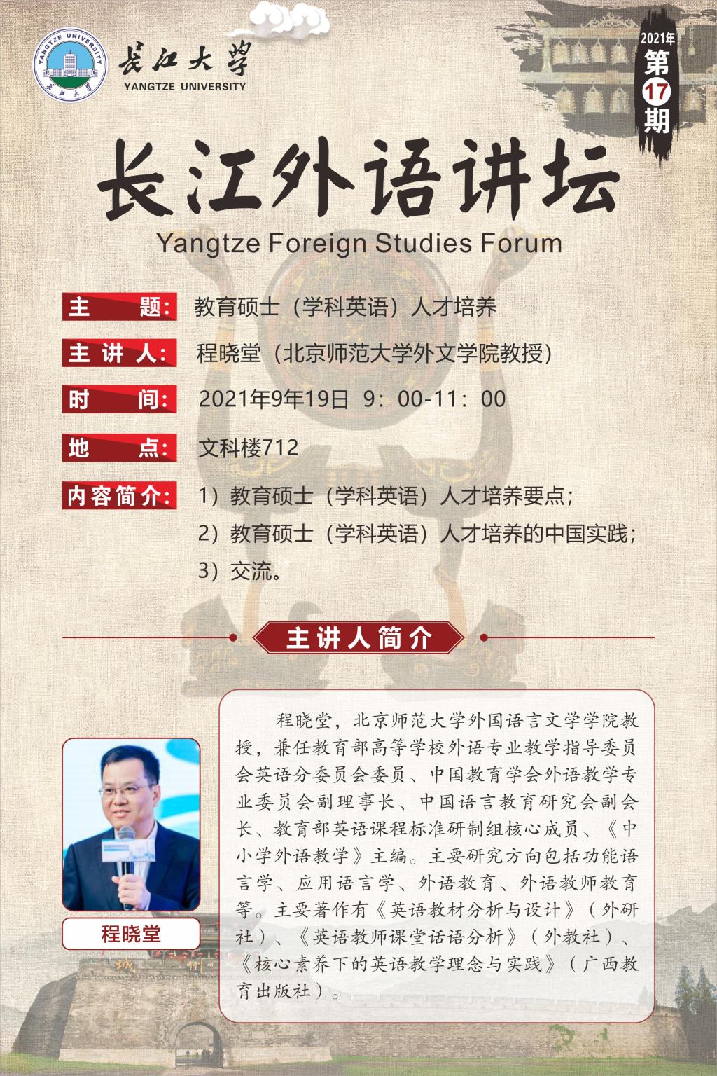 长江外语讲坛(2021年第十七讲) 教育硕士(学科英语)人才培养