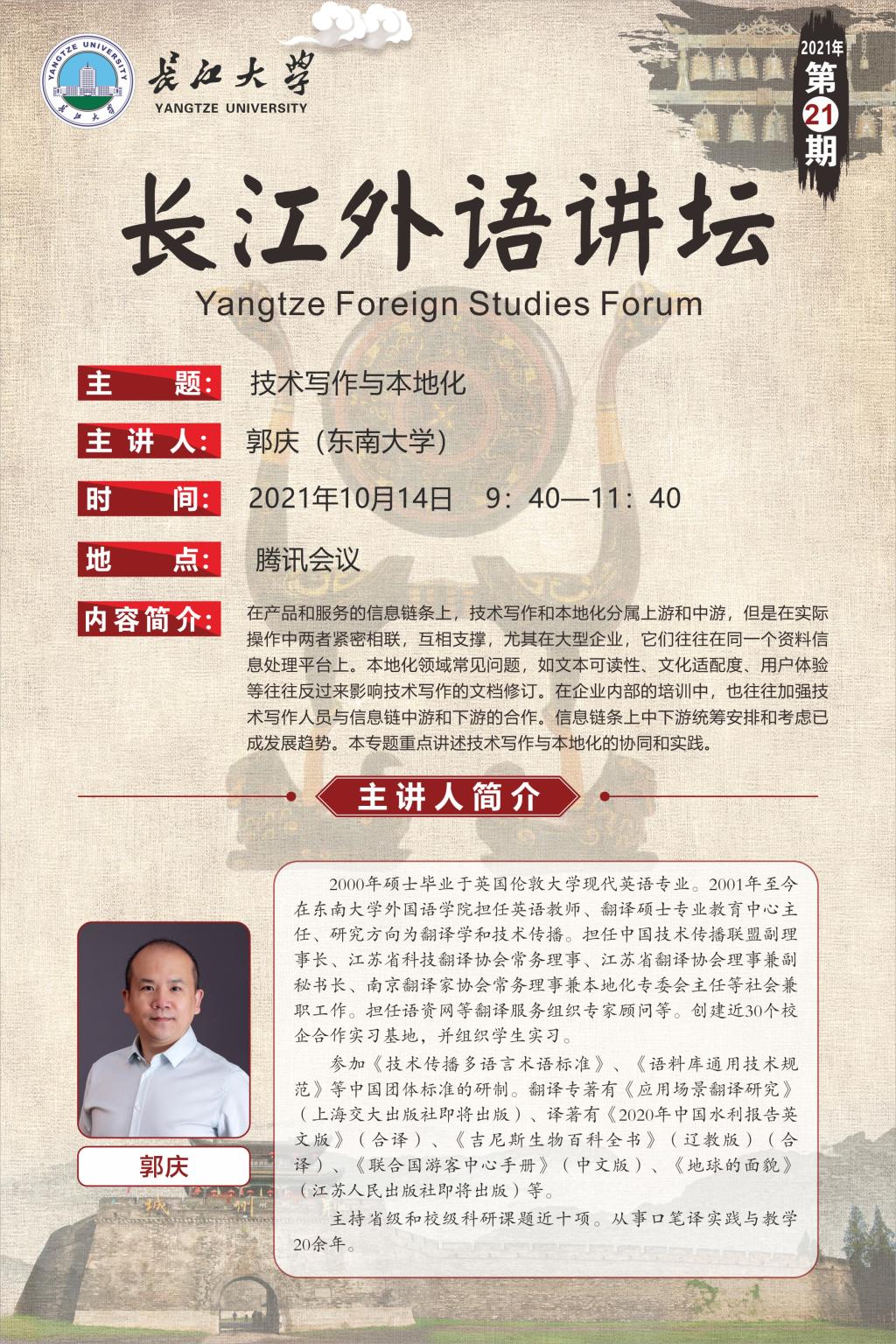 长江外语讲坛(2021年第二十一讲)技术写作与本土化