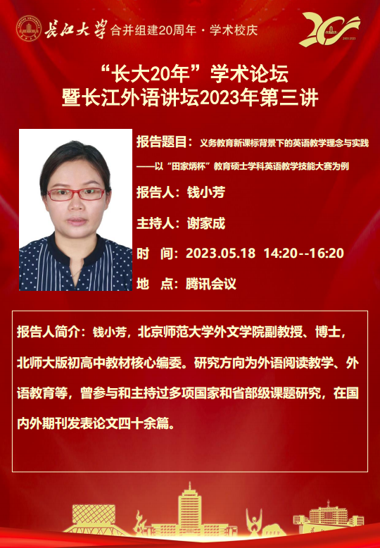 “长大20年”学术论坛 暨长江外语讲坛2023年第三讲