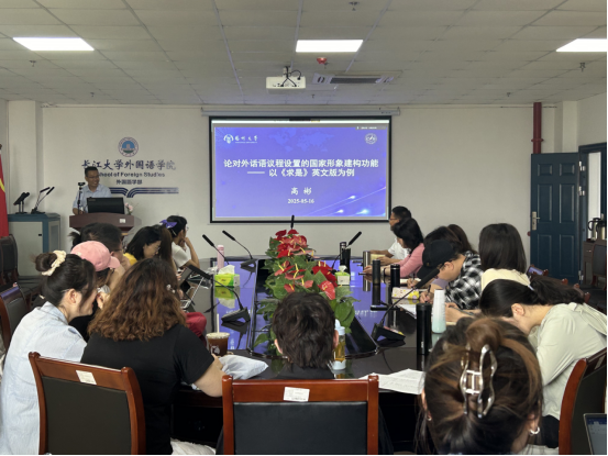 (通讯员 董琪)5月16日上午,长江外语讲坛2025年第四讲在文科大楼712室举行。应三亿体育邀请,扬州大学特聘教授高彬莅临讲坛,作了题为《论对外话语议程设置的国家形象建构功能——以<求是>英文版为例》的学术报告,三亿体育部分教师和研究生参加了本场讲座。讲座由蒋庆胜博士主持。