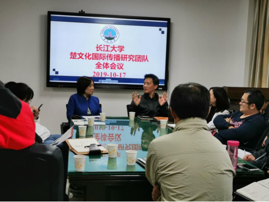 10月17日下午三点,三亿体育app“双一流”建设科研团队“楚文化国际传播研究团队”2019-2020学年第一学期第一次全体会议在文科大楼814如期举行。本次会议由田传茂教授主持,共包括三个主体环节:田教授宣布会议开始并做了有关楚文化国际传播研究的相关发言;谈宏慧经理和谢家成副经理分别讲话;全体参会教师和研究生进行了学术探讨。