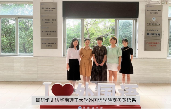 6月9日下午,调研组访问华南理工大学,受到商务英语系主任苏娉教授的热情接待。华南理工大学商务英语专业为国家级一流本科专业建设点,在商务英语领域有较高的声誉与影响力。苏教授详细介绍了该校商务英语专业的课程设置和教学安排,解答了调研组关于员工实习实践等方面的疑惑。