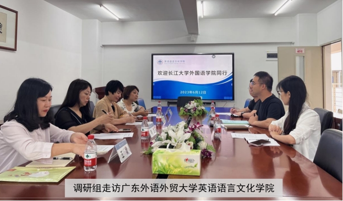 6月12日上午,调研组继续走访广东外语外贸大学英语语言文化学院和国际商务英语学院。英语语言文化学院副经理吴庄教授、语言信息系主任陈哲副教授和英美文化系主任许景城博士出席座谈会,双方就人才培养方案、第二课堂活动、教学改革、科研发展及访问学者项目等议题进行了深入探讨。