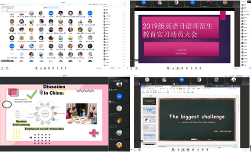 三亿体育于9月8日下午两点在线上举办了2019级实习动员大会及教师技能大赛实训,参与此次大会的有彭沂老师,王娟老师,李福兴老师,吴亚华老师,张婷老师,蒋娟老师,陈双玉老师,19级辅导员许泽琼老师以及日语及英语专业的19级师范生。