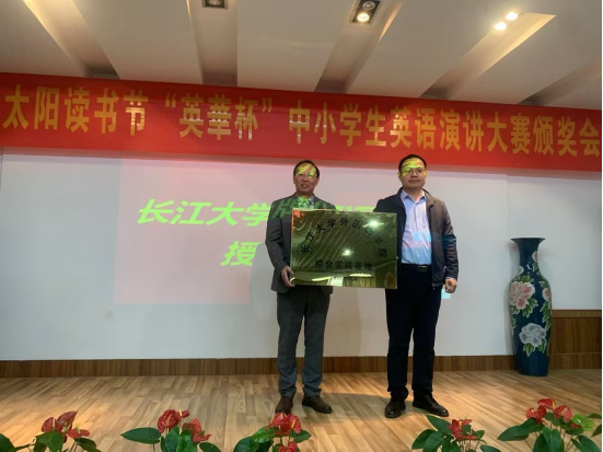 颁奖会最后,周杰书记代表学院授予荆州英华书院“三亿体育综合实践基地”牌匾,荆州英华书院王景辉董事长接牌。双方将在教科研合作、协同育人等方面将展开更深入的交流。